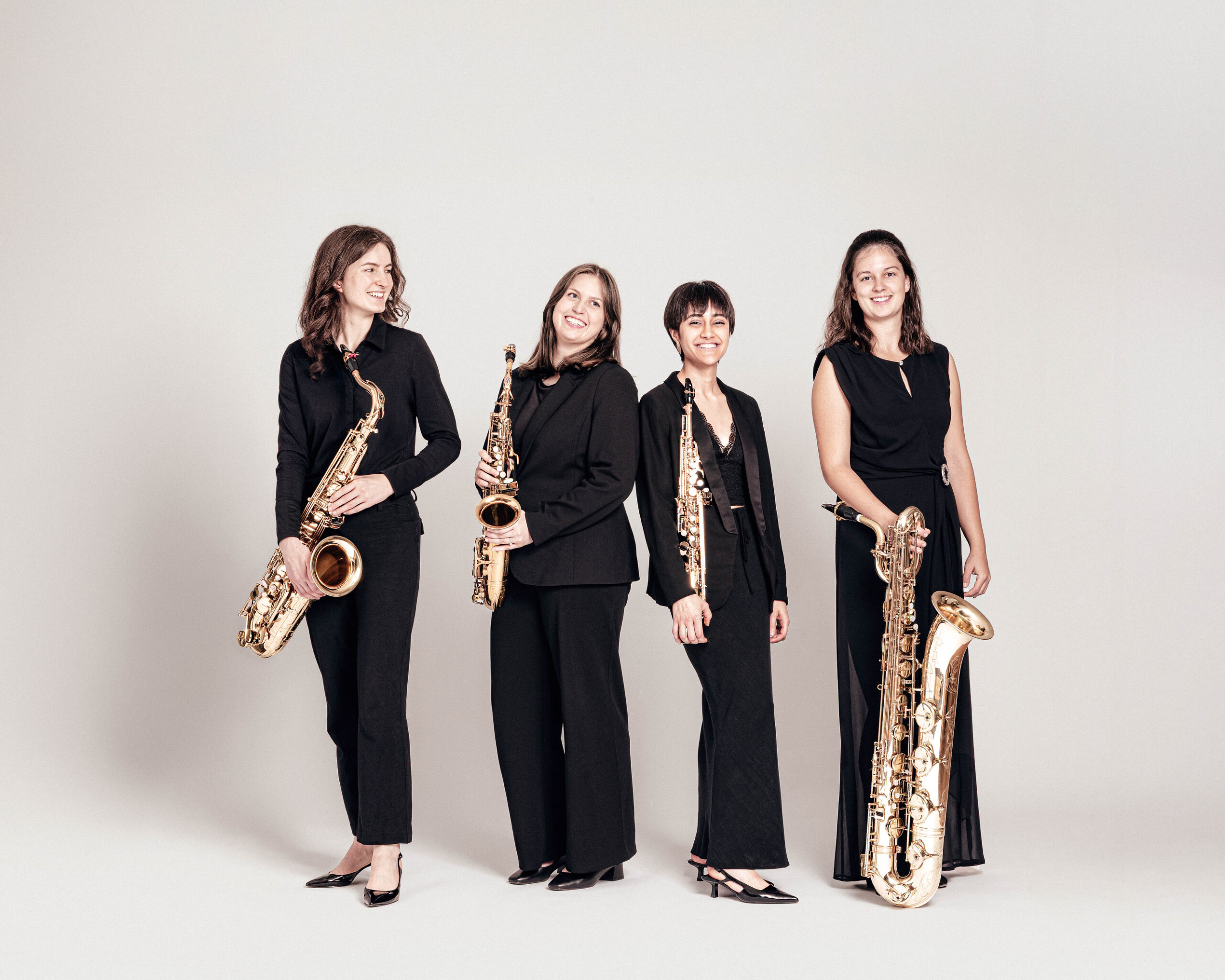 Das „ ELAN Saxophonquartett “ wurde im Oktober 2024 gegründet und besteht aus den vier Saxophonistinnen Leonor Ferreira (Sopransaxophon), Enja Golob (Altsaxophon), Nele Viehmann (Tenorsaxophon) und Avelina Neye (Baritonsaxophon). Alle vier studieren bei Prof. Daniel Gauthier an der Hochschule für Musik und Tanz Köln.