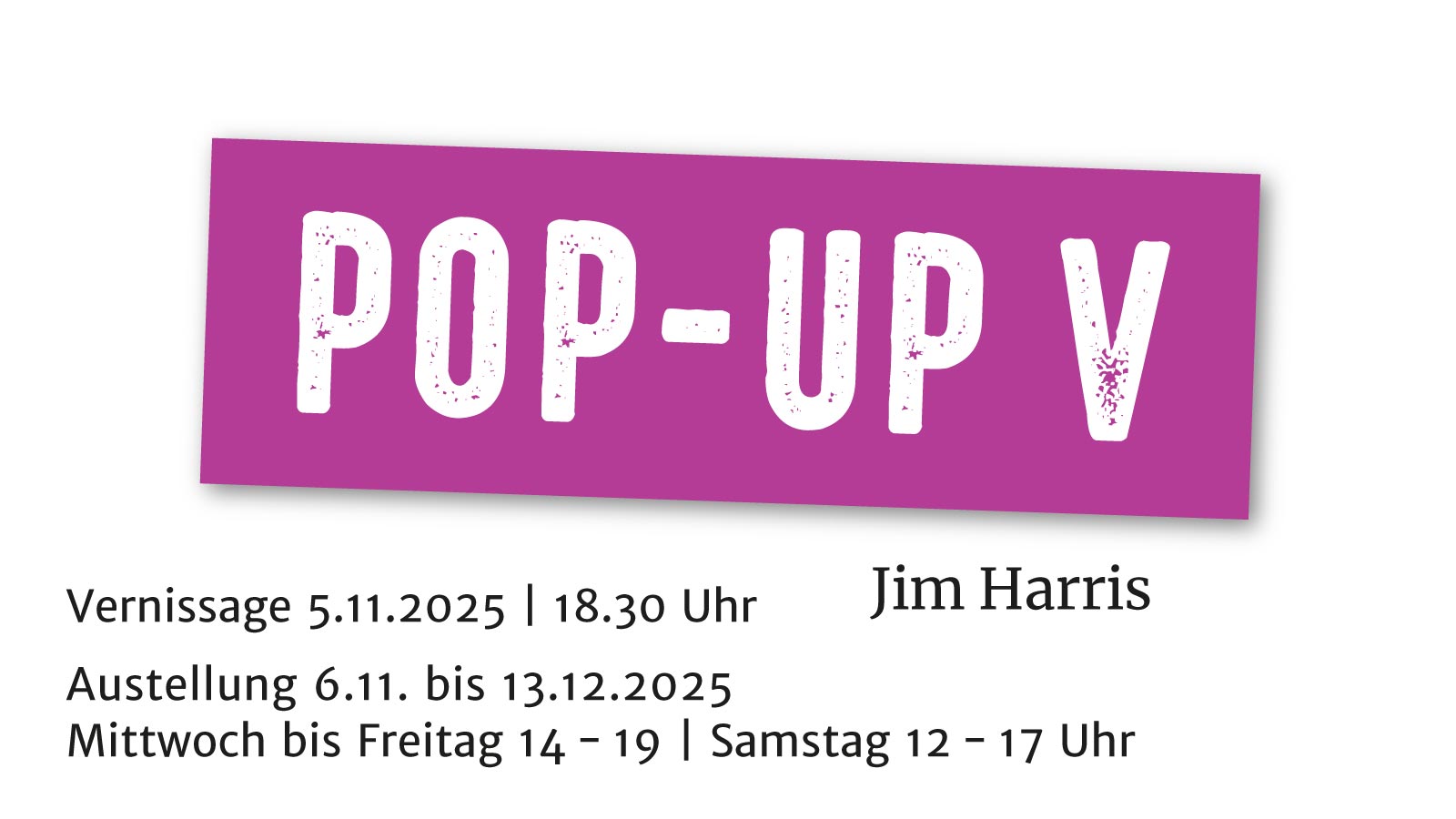 Im Vorfeld der offiziellen Eröffnung der Galerie VILLA MINIMA freuen wir uns, Ihnen in Pop-Up V eine Ausstellung mit den Werken von Jim Harris präsentieren zu dürfen.